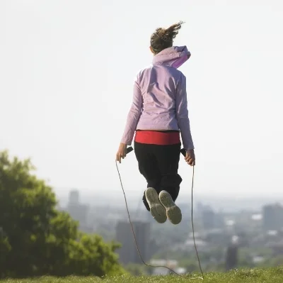 Do either the basic jump or the alternate-foot jump for 5 minutes. If you can’t keep it up that long, start by jumping for one minute, resting for one minute, and repeating for 5 sets. Aim to complete at least 600 jumps total.